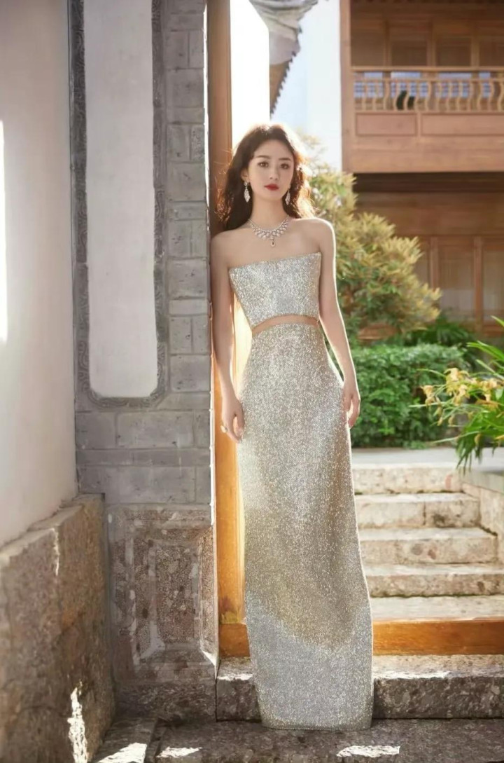 赵丽颖一头大波浪披肩金发搭配闪钻抹胸露腰长裙,清澈的双眸闪烁着温柔的光芒,性感红唇妩媚动人,婀娜玲珑的身姿轻盈飘逸,怎一个美字了得!