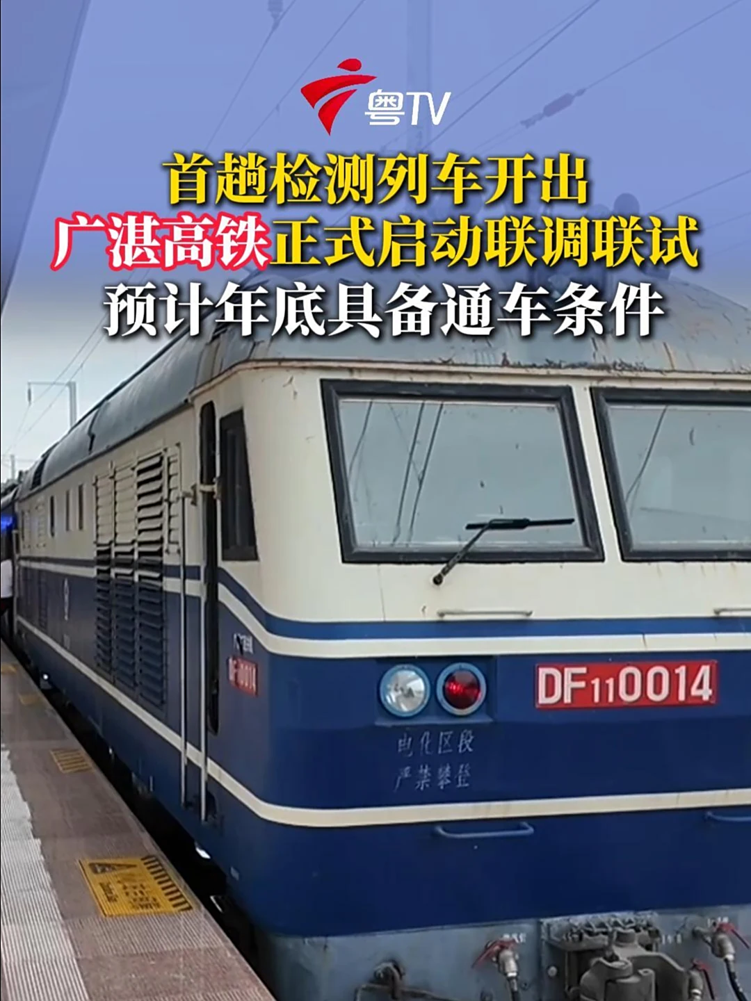 今天早上,一列挂上检测车厢的东风 11 机车从新兴南站驶向湛江北站,标志着广湛高铁联调联试工作分段开展,过程中工作人员将对高铁各系统进行全面测试,确保其性能和功能符合设计要求。