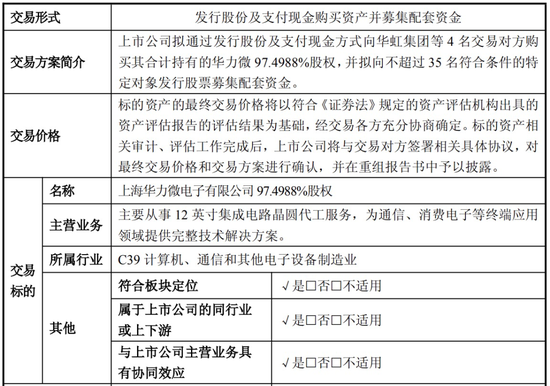 8月31日,华虹公司披露重组预案,公司拟通过发行股份及支付现金方式向华虹集团等4名交易对方购买其合计持有的华力微97.4988%股权,并拟向不超过35名符合条件的特定对象发行股票募集配套资金。公司股票将于9月1日开市起复牌。