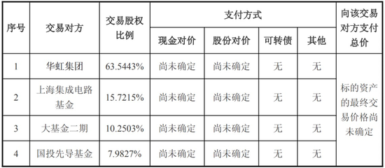 具体来看,华虹公司本次交易对方包括华虹集团、上海集成电路基金、大基金二期、国投先导基金,华虹公司本次发行股份的价格为43.34元/股,标的资产的最终交易价格尚未确定。锁定期安排上,华虹集团本次交易中所认购股份锁定期36个月,上海集成电路基金、大基金二期、国投先导基金所认购股份均锁定12个月。
