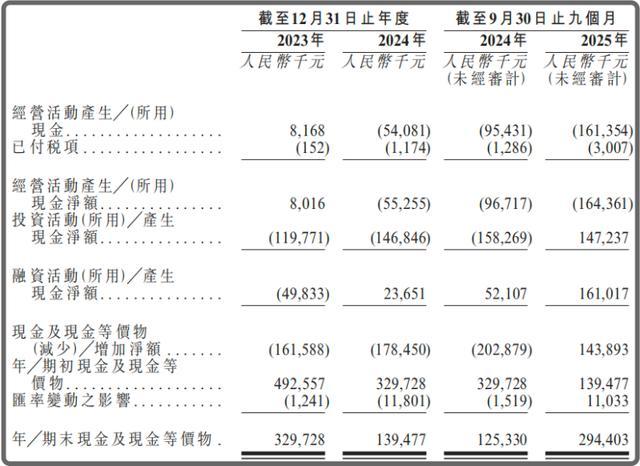 具体来看,公司的现金及现金等价物从2023年的3.3亿元下降至2024年的1.39亿元,尽管2025年前三季度已经增加至2.94亿元,但仍不及2023年水平。同时,2023年公司经营活动产生的现金流量净额为801.6万元,但在2024年即转变为-5525.5万元,2025年前9个月更是扩大到了-1.64亿元。
