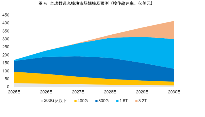 同时,根据Lightcounting的预测,2026年全球数通光模块市场规模有望达到228亿美元,预计2030年整体市场规模将增长至414亿美元,对应2025-2030年复合增长率为20%。