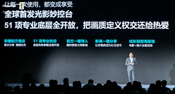 海信UX2026款搭载行业首创光影妙控台,内置大师级调色方案可一键复刻专业画质,更开放 51 项核心参数支持资深玩家精细调节,更有调色配方商店,未来将汇集导演与专业调色师的大师方案,支持一件复制,普通用户也能轻松调出专业级画面,解锁画质调试互动新体验。