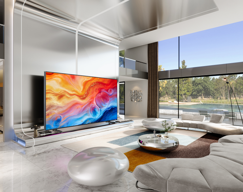 116 英寸版本更是全球最大的 RGB-Mini LED 电视,以 “江山画卷” 设计理念斩获德国 IF 2026 设计大奖,35mm 极致纤薄机身可无缝贴墙,完美融于各类家居风格。