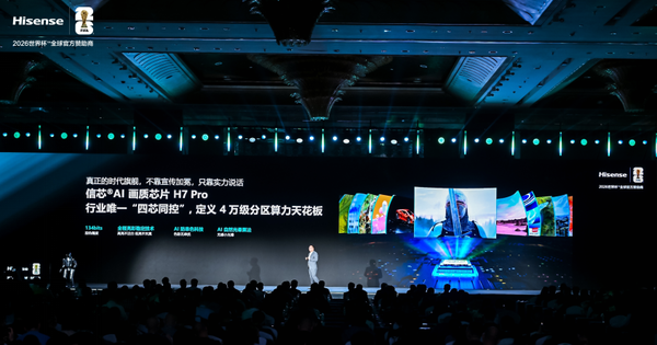 为完美驾驭巅峰光学系统,海信 UX2026 款搭载全行业唯一四芯同控信芯 AI 画质芯片 H7 Pro,以 134bits 行业最高控色精度,搭配AI防串色科技、AI 自然光晕算法,将 Mini LED电视明暗交界处的光晕消融至人眼难以感知的程度。